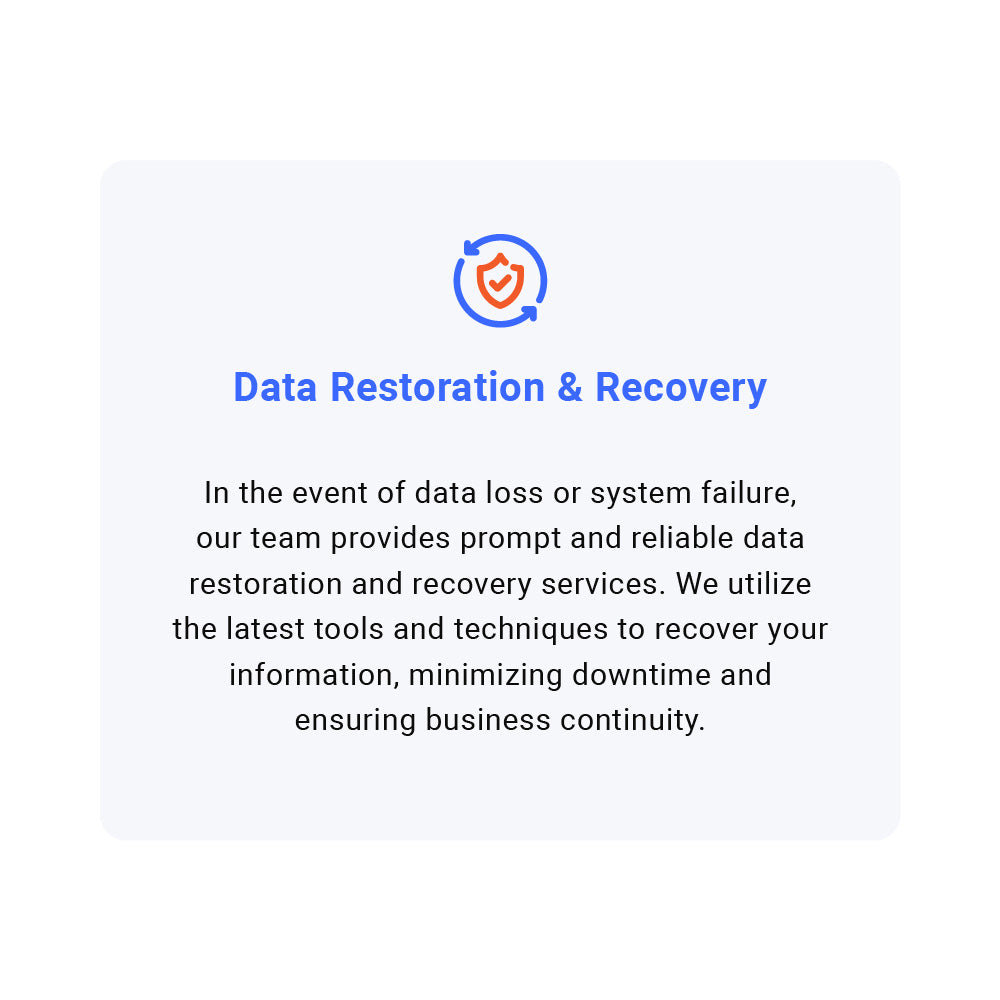 Safeguard your valuable business data with our comprehensive Data Backup and Recovery Services. Our expert team ensures that your organization's information is secure, protected, and readily available in the event of unforeseen circumstances.