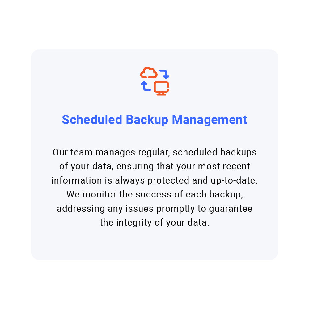 Contact us today to learn more about our customized Data Backup and Recovery Services, designed to give you peace of mind and ensure the ongoing success of your business.